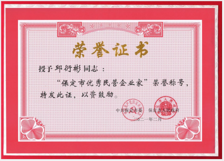 2月26日,在保定市品质生活之城建设暨“三重四创五优化”和“三基”建设年活动动员大会上,保定市委、市政府对保定市优秀民营企业及个人进行了表彰。其中,保定浪拜迪电气股份有限公司董事长邱衍彬荣获“保定市优秀民营企业家”荣誉称号。