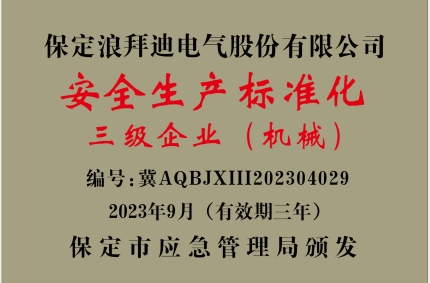 根据河北省安全生产标准化建设有关规定,在企业完成自评、自愿申请评审的基础上,我公司顺利通过安全生产三级标准化评审,达到安全生产三级标准化标准。
