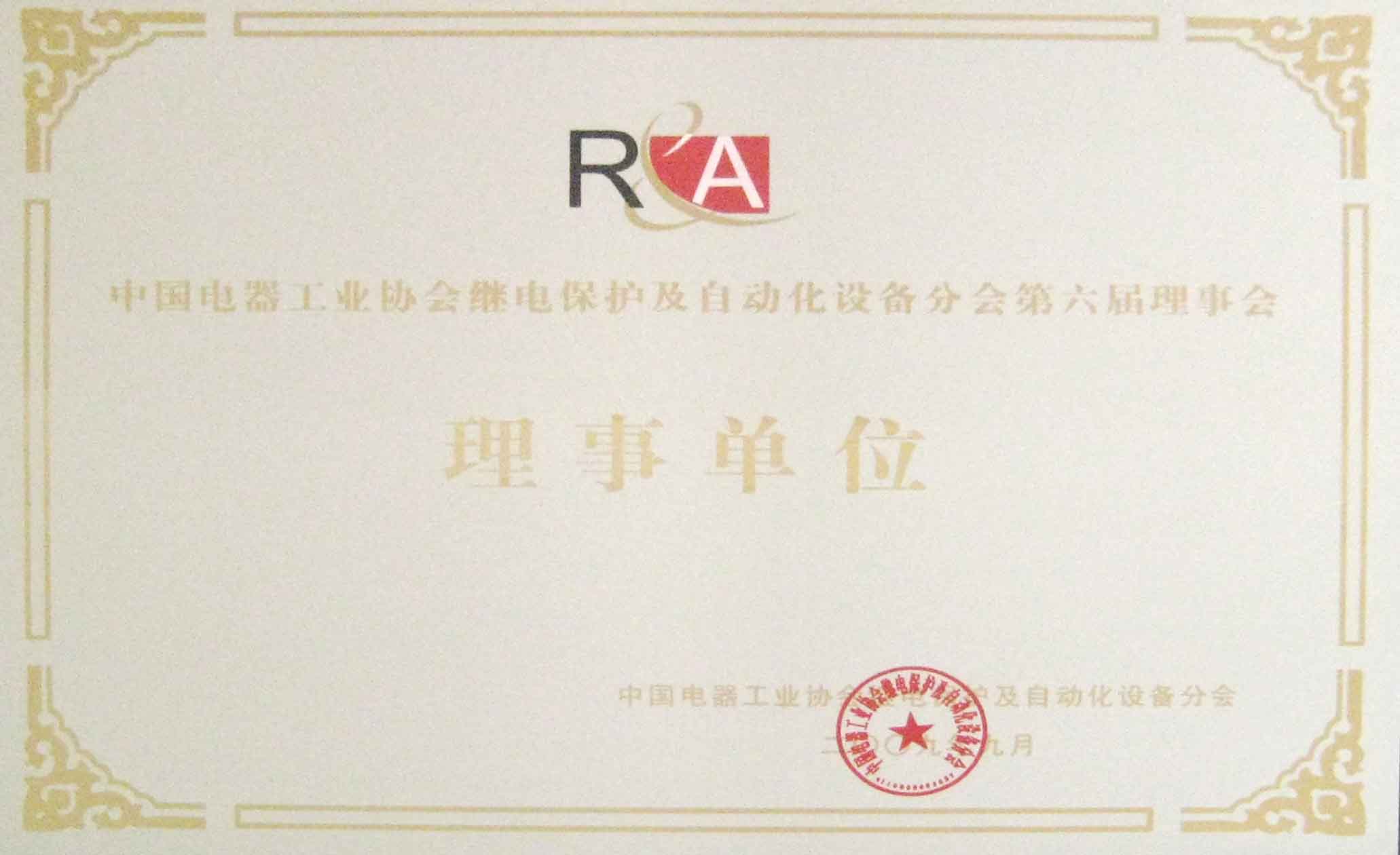 2009年10月15日中国电器工业协会继电保护及自动化设备分会召开第六届理事会,我公司被评为理事单位并授予牌匾以资鼓励。