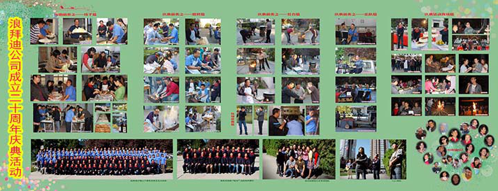 2012年9月28日浪拜迪公司洋溢着节日的喜庆,在中秋国庆双节即将到来之际,浪拜迪人也迎来了自己二十岁的生日。为庆祝20华诞,上午公司组织全体员工进行了全员大合影纪念照,下午举行庆典活动。18:00整,大院内鞭炮齐鸣,庆典活动正式开始,首先由董事长致词,之后进行了切蛋糕、开香槟、烧烤、冷餐、舞会等诸多项目,虽然夜幕降临,但大家依旧兴致盎然在欢歌笑舞,浪拜迪大院变成了欢乐的海洋。