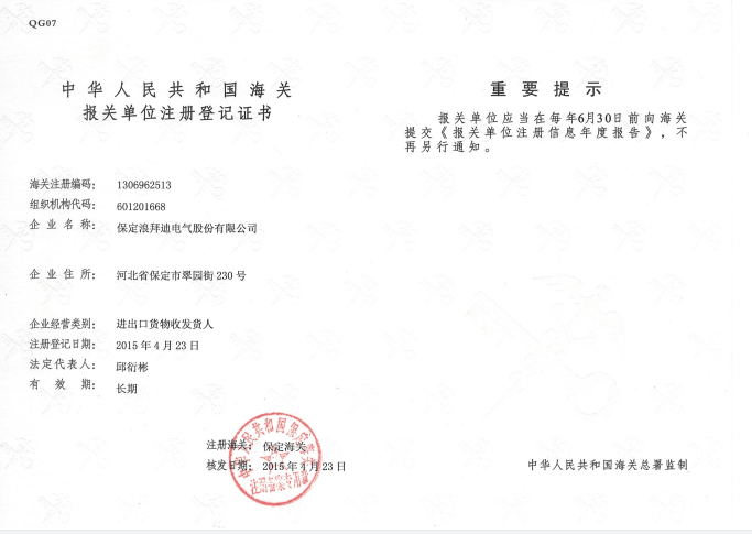 版权所有:浪拜迪电气股份有限公司 电话:+86+312+3105235,3105236 传真:+86+312+3105239