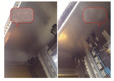 目前,在变电站、水泥、化工、铁路交通隧道、风电、太阳能等行业中的设备控制柜都存在偶发、长期或季节性潮湿情况,开关柜等由于其紧凑的结构, 湿度不易排出,当空气湿度过大时,将极大地影响电气绝缘强度,因潮湿而导致环网柜、控制柜、变电箱等箱体内部或顶部凝露引发的事故越来越频发。